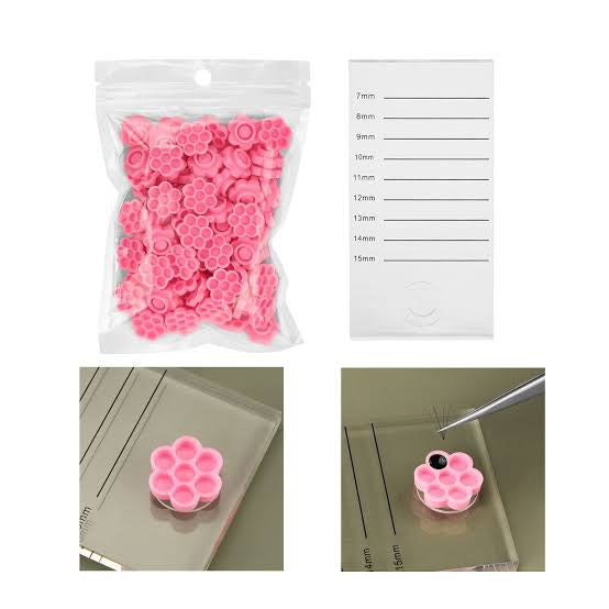 Uso: Soportes en forma de flor, material plástico de alta calidad, utilizado para Injerto de pestañas herramienta de maquillaje, se puede colocar pegamento en cada uno de sus orificios.